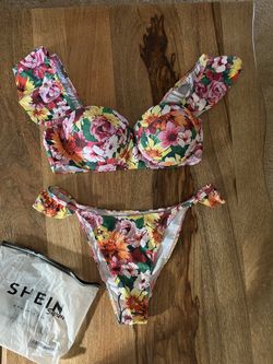 SHEIN Floral Print Bikini Set Ruffle Trim Push Up Top & High Cut Bottom 2 Piece Swimsuit$8Riverside, CA