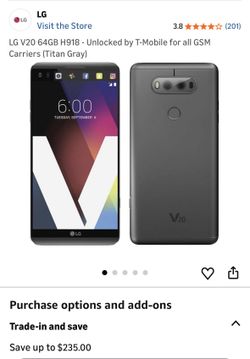 LG V20 64GB H918 - Unlocked by T-Mobile for all GSM Carriers (Titan Gray$150Bell Gardens, CA