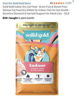 Solid Gold Indoor Dry Cat Food - Grain Free & Gluten Free - Salmon Cat Food Dry Kibble for Indoor Cats for Gut Health - Sensitive Stomach & Hairball S$20Bell Gardens, CA