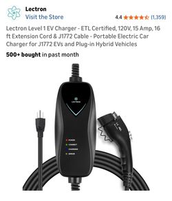 Lectron Level 1 EV Charger - ETL Certified, 120V, 15 Amp, 16 ft Extension Cord & J1772 Cable - Portable Electric Car Charger for J1772 EVs and Plug-in$80Bell Gardens, CA