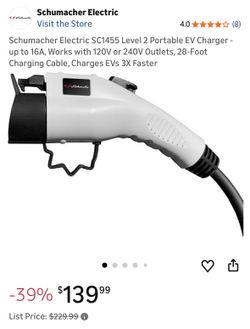 Schumacher Electric SC1455 Level 2 Portable EV Charger - up to 16A, Works with 120V or 240V Outlets, 28-Foot Charging Cable, Charges EVs 3X Faster$80Bell Gardens, CA