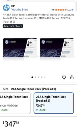 HP 26A Black Toner Cartridge Printers | Works with LaserJet Pro M402 Series; LaserJet Pro MFP M426 Series | CF226A , (Pack of 2)$200Bell Gardens, CA