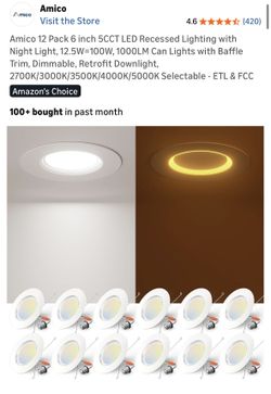 Amico 12 Pack 6 inch 5CCT LED Recessed Lighting with Night Light, 12.5W=100W, 1000LM Can Lights with Baffle Trim, Dimmable, Retrofit Downlight, 2700K/$30Bell Gardens, CA