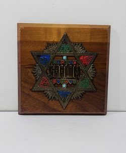 Vintage Shalom Judaica Enameled Brass Star of David on Solid Wood Wall Plague $65Boca Raton, FL