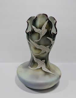 Antique Nippon Moriage Raised Porcelain Vase Flying Swans Extremely Rare 11”-8”.$500Boca Raton, FL