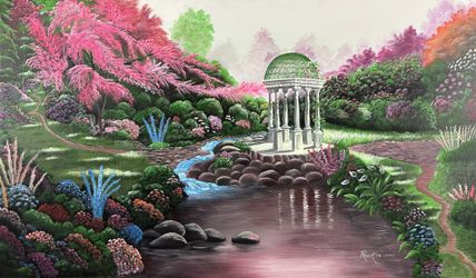 American, Prack, 2000, Original Large Oil Painting on Canvas, Garden Serenity$100Fort Lauderdale, FL