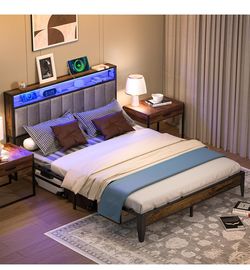 Bed Frame Queen Size, Metal Platform Bed Frame with Storage & LED New In Box$100Downey, CA