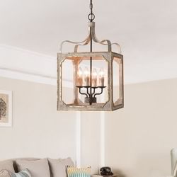 French 4-Light Lantern Chandelier Square Candelabra Pendant Light In Antique Gray $80$80Downey, CA