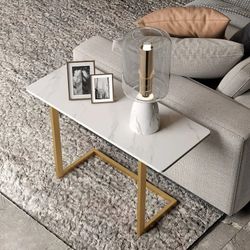 26" C-Shaped Rectangle Sintered Stone Gold Finish Side Table with a few scratches Not Noticeable In Pictures $40Downey, CA