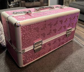 Pink Butterflies box/Makeup train case with combination lock $80Pico Rivera, CA