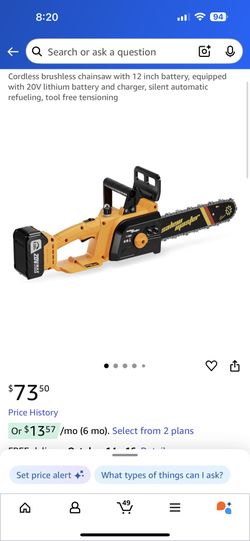 Cordless brushless chainsaw with 12 inch battery, equipped with 20V lithium battery and charger, silent automatic refueling, tool free tensioning$20Rancho Cucamonga, CA