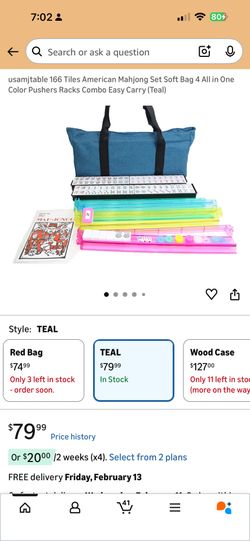 usamjtable 166 Tiles American Mahjong Set Soft Bag 4 All in One Color Pushers Racks Combo Easy Carry (Teal)$20Rancho Cucamonga, CA