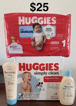 Baby Essentials Bundle: Huggies Diapers & Wipes and Aveeno Baby Wash & Lotion$25Selma, CA