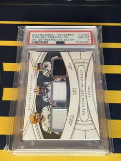 2021 National Treasures Rodgers/Jones/Dillon NFL Gear Trio Materials /25 Psa 8$95Queens, NY