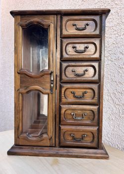 Vintage 1981 Wooden Jewelry Box with Mirror and Drawers Avon Team Leader 1981$165San Diego, CA