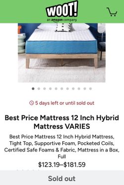 Brand New Still In Original Box Best Price Mattress 12 Inch Hybrid Mattress, Tight Top, Supportive Foam, Pocketed Coils, Certified Safe Foams & Fabric$100Glendale, AZ