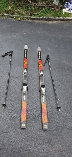 Vintage Spalding 170cm Cross Country Skis with Retlex Poles & 350 Tyrolia Bindings – Red/Orange Design$100Great Neck, NY
