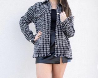 Elan In Tweed Button Down Jacket sz S women’s striped Black/White $139Houston, TX