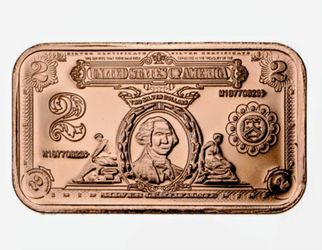 1 oz Cupper Bar "$2 Bank Note" .999 Pure Cupper Bar Free Shipping $12Homestead, FL