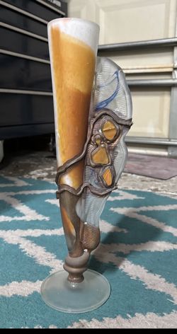 Vintage Romanian blue satin art glass horn shaped vase - with abstract design$300Pembroke Pines, FL