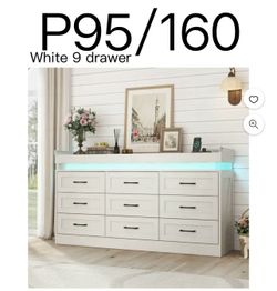 P95ð¥White Dresser with LED Light and Charging Station, Modern Wood Dresser with Wide Drawers and Metal Handles, 7 drawer dresser for Bedroom, Living $160Columbia, MD