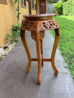 Antique Rosewood Chinese Hand Carved Wood & Mable Plant Stand Great Condition $75Oakland Park, FL