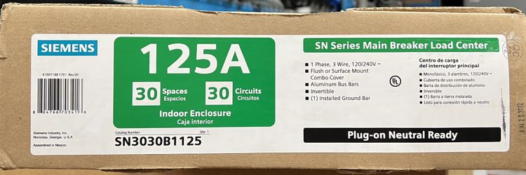 Siemens Electrical Panel - 125A Main Breaker 30 Space 30 Circuit$123Chicago, IL