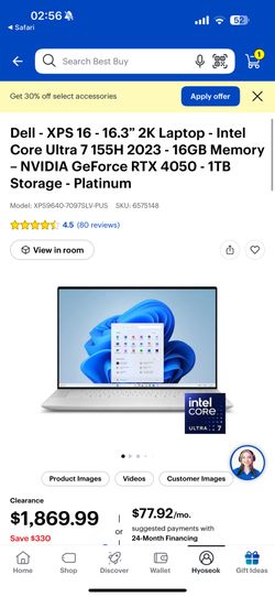 Dell XPS 16 - 16.3" 2K Laptop - Platinum$1,300Queens, NY