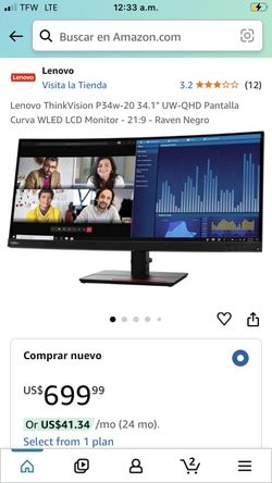 Lenovo Thinkvision P34w-20 $300Hawthorne, CA