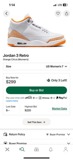 Air Jordan 3 Retro Orange Citrus$300North Bergen, NJ