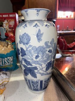 Blue & White Chinese Ceramic Porcelain Tall Vase Butterflies & Flowers 13 1/4"$60Port Acres, TX