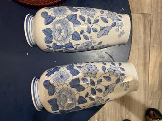 Vintage Blue & White Chinese Ceramic Porcelain Wall poc Vase Leaves Flowers 12’$70Port Acres, TX