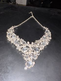Vintage Statement Silver Tone Necklace Pearl & Crystal Rhinestone Signed with H$50Port Acres, TX