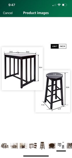 Merax 3- Piece Solid Wood Dining Table Set Kitchen High Pub Table Set with 2 Bar Stools (Espresso)$125Saugus, MA