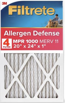 3M Filtrete MPR 1000 Allergen Defense Air Filter 20x24x1 (4-pack, new) $30San Diego, CA