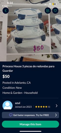 Princess House 3 piezas de redondas para Guardar$35Victorville, CA
