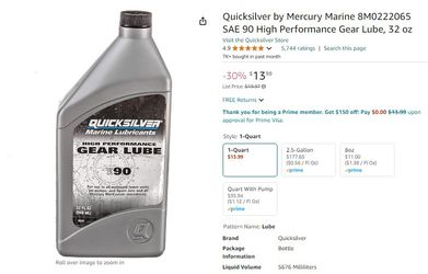 32 Oz Quicksilver By mercury marine SAE 90 HP Gear lube$5San Jose, CA