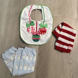 Lot Of Babylegs Holiday Christmas Leg warmers MudPie Bib Baby Snowmen Ornaments$3Upland, CA