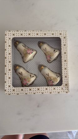 Vintage Embroidered Handpainted Christmas Ornaments By Krebs Box Of 4 Bells$20Upland, CA