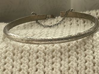 Sterling Silver Round Etched Safty Catch Bracelet Bangle)$45Austin, TX