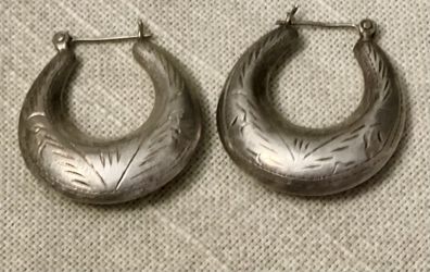 1 1/4" x DANGLING etched hoops 0.925 Sterling Silver PIERCED WIRE Earrings$40Austin, TX