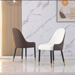 Dining Chair with PU Leather Solid Wood Metal Legs (Set of 2), 2 Piece, White+Brown$70City Of Industry, CA