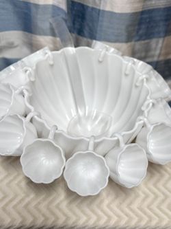 Vintage Hazel Atlas Alpine White Swirl Milk Glass Punch Bowl/cups$80Temecula, CA