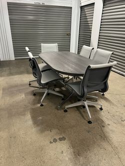 SoldConference Table 72”x36 With 6 Herman Miller Setu Chairs $680Houston, TX