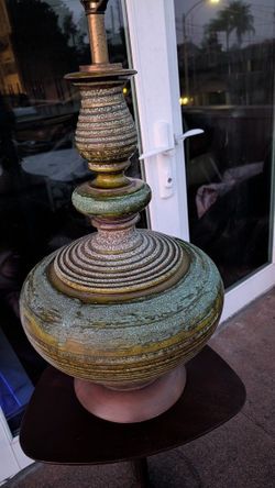 Vintage Ceramic Lamp 16" Mid-Century Pottery Light Lava Glaze MCM Green Patina Copper Color$99Long Beach, CA