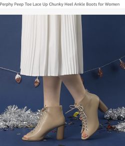 Perphy Peep Toe Lace Up Chunky Heel Ankle Boots$15Florissant, MO
