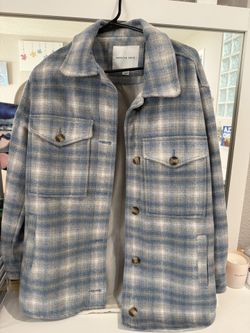 American Eagle Oversized Plaid Shacket Blue Gray Wool Blend Jacket Cozy Oversized Fit Size S$20San Ramon, CA