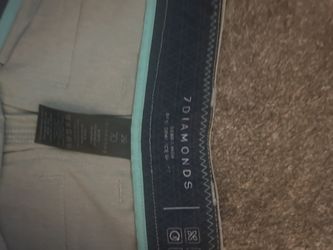 Light khaki / olive green casual shorts with a clean, simple look. Flat front design with belt loops, button closure, and multiple pockets (front and $18Dunn, NC
