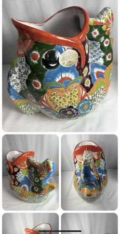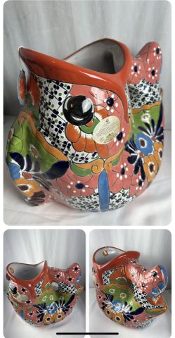 🐒 Rare Large Talavera Koi Fish Tropical Mexican Pottery Ceramic Planter 19” 🐒$300West Greenwich, RI