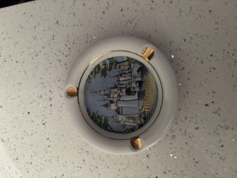 vintage 1960s Disneyland ceramic ashtray featuring Sleeping Beauty Castle and gold accents.$30Pompano Beach, FL